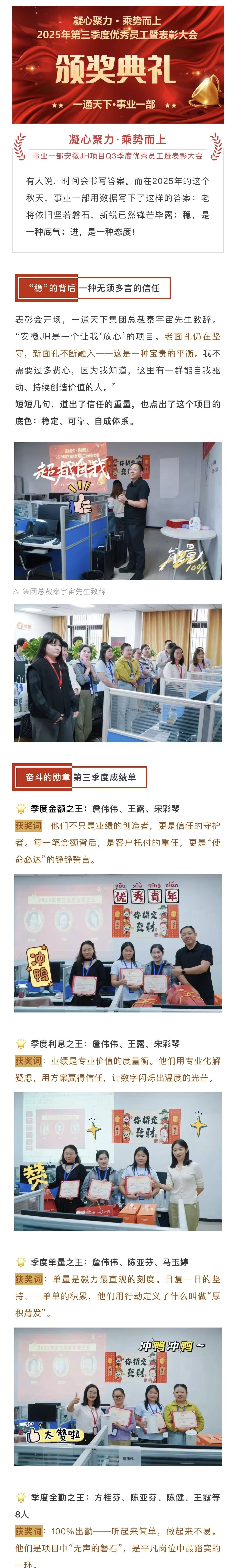荣誉时刻 | 事业一部安徽JH项目Q3季度优秀员工暨表彰大会圆满召开